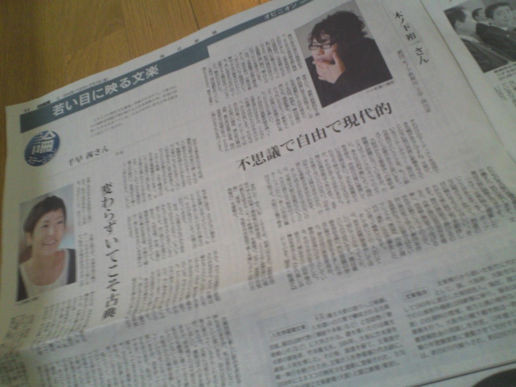 本日2/7の毎日新聞朝刊に木ノ下の文楽についてのインタビューを掲載していただきました。是非ご一読下さい。 -