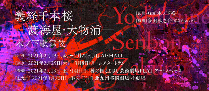 木ノ下歌舞伎 の次回公演『義経千本桜ー渡海屋・大物浦ー』の出演者・スタッフ、ツアー日程を公開しました!AI・HALL、シアタートラム、穂の国とよはし芸術劇場PLAT、北九州芸術劇場 にて2021年2月〜3月に上演します。チケット一般発売は2021年1月23日予定... -