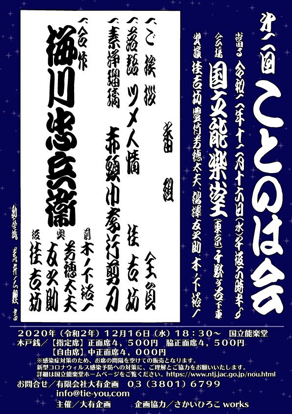 木ノ下が第二回ことのは会に出演させていただきます。日時:12月16日(水)18:30開演 会場:国立能楽堂 番組:「ツメ人情」「赤頭巾孝行剪刀」「梅川忠兵衛」 出演:桂吉坊(上方落語) 豊竹芳穂太夫(文楽太夫) 鶴澤友之助(文楽三味線) 木ノ下裕一(木ノ下歌... -